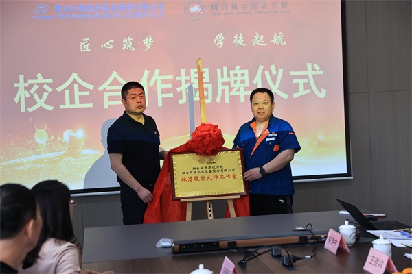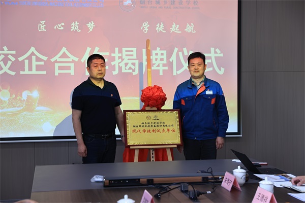 為進一步深化校企合作,實施人才強企戰略,實現校企合作共贏、共謀發展的美好愿景。2023年5月12日,公司與煙臺城鄉建設學校舉行校企合作揭牌儀式,在公司三樓第一會議室舉行。公司黨委書記、常務副總經理崔文剛,工會主席陳瑋,企業管理中心副主任王德祥,技師工作站站長林浩,校方教學分管領導張昌勇,國信部主任馮濤等一行5人,近年對我司人才招引工作給予大力支持的市直機關工委副書記蘇小峪、市委財經辦秘書科科長王衍應邀出席本次揭牌儀式。
