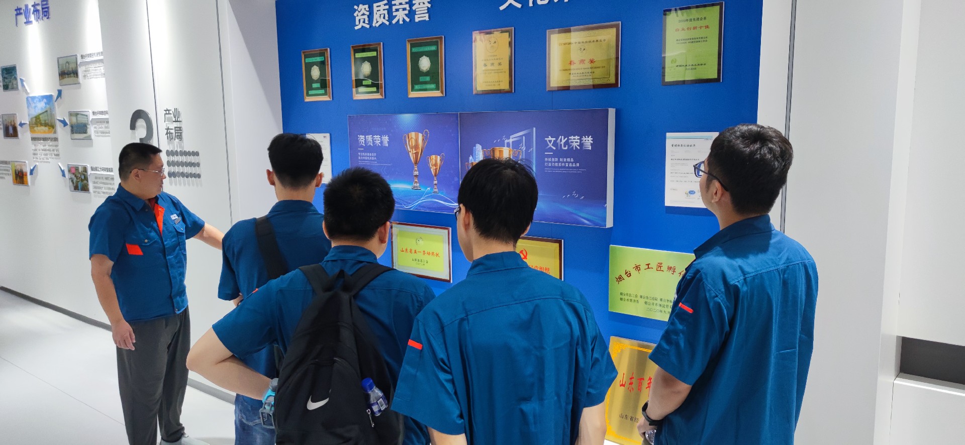 在入職培訓中,公司副總經(jīng)理、總工程師景國豐向新入職技術員工詳細介紹了公司產(chǎn)品和技術發(fā)展情況,對技術崗位的職業(yè)發(fā)展前景進行了概括并對新員工提出了崗位要求與期待,勉勵大家能夠秉持“不登高山,不知天之高也;不臨深溪,不知地之厚也”的精神,成為一名深入一線,事必躬行的技術人才。企業(yè)管理中心副主任王德祥、人事專員崔巖輝分別為新員工們講解了公司的企業(yè)文化、人力資源制度及人才補貼政策,王主任帶領大家參觀了廠區(qū)及多媒體展廳,并向新員工詳細介紹了企業(yè)發(fā)展歷程及獲得的榮譽,大家對公司悠久的發(fā)展歷史感觸頗深,紛紛表示非常榮幸能剛畢業(yè)就應聘進入這樣一家有底蘊的公司,希望未來的自己也能登上公司的榮譽榜,在企業(yè)的發(fā)展中留下自己的光輝痕跡。